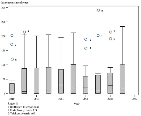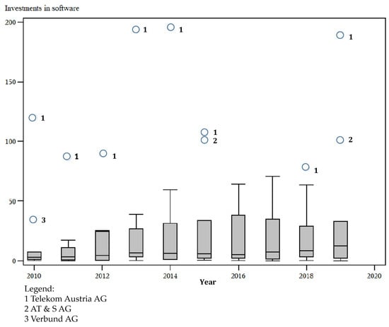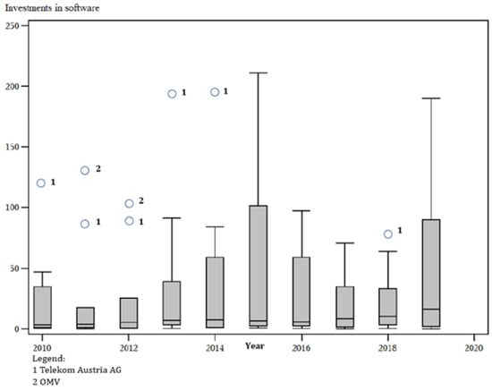 Development of investments in software of all companies listed on the Austrian ATX Prime market from 2010 to 2019 (n = 19).