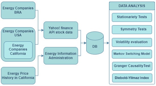 This research involved collecting data, which were further processed and analyzed for relevant patterns and causal effects. This study used stock data from the Yahoo! Finance API and the California energy-price data from the U.S. Energy Information Administration, as presented in Section 3.1.