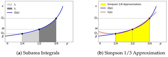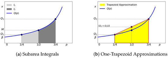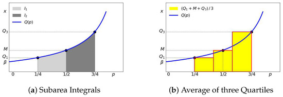 Let Q x ( p ) and Q y ( p ) denote their corresponding quantile functions. The means μ x and μ y can be computed as areas under their quartile functions: