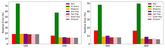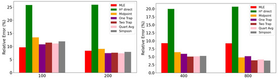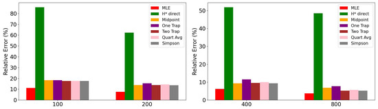 Finally, Table 13 shows the relative percentage errors for tail index α estimation, where the Simpson and Two Trapezoids methods showed errors generally below 5% across most datasets, while the H* method exhibits the highest errors, ranging from 11% to 39%.