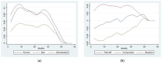 This article introduces new counterfactual standardization techniques for comparing duration distributions subject to random censoring through counterfactual decompositions. The counterfactual distribution of one population relative to another is computed after estimating the conditional distribution, using either a semiparametric or a nonparametric specification. We consider both the semiparametric proportional hazard model and a fully nonparametric partition-based estimator. The finite-sample performance of the proposed methods is evaluated through Monte Carlo experiments. We also illustrate the methodology with an application to unemployment duration in Spain during the period between 2004 and 2007, focusing on gender differences. The results indicate that observable characteristics account for only a small portion of the observed gap. Full article