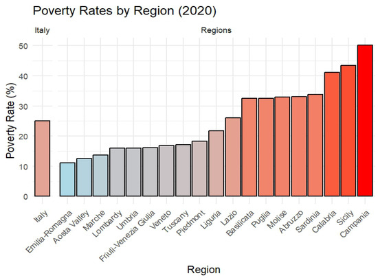 Poverty is a complex global issue, closely linked to economic and social inequalities. It encompasses not only a lack of financial resources but also disparities in access to education, healthcare, employment, and social participation. In alignment with the United Nations’ Sustainable Development Goals—specifically SDGs 3 (Good Health and Well-being), 4 (Quality Education), and 8 (Decent Work and Economic Growth)—this study investigates the relationship between poverty and a set of socioeconomic indicators across Italy’s 20 regions. To explore how poverty levels respond to different predictors, we apply an identity spline transformation to simulate controlled changes in the poverty indicator. The resulting scenarios are analyzed using partial least squares regression, enabling the identification of the most influential variables. The findings offer insights into regional disparities and contribute to evidence-based strategies aimed at reducing poverty and promoting inclusive, sustainable development. Full article