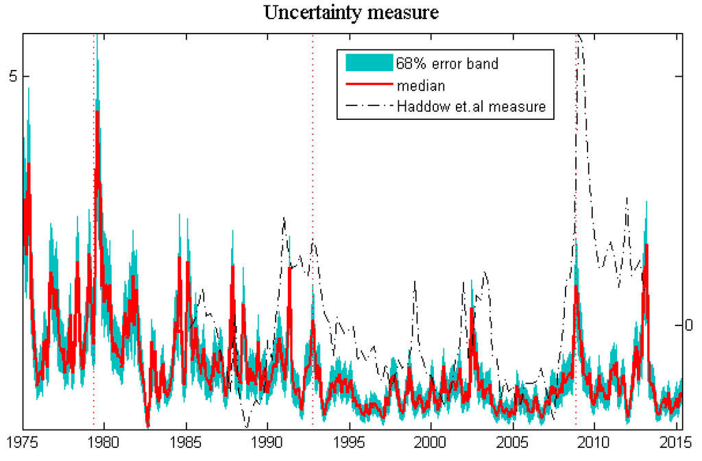 - A. Haddow, C. Hare, J. Hooley, and T. Shakir. “Macroeconomic uncertainty: What is it, how can we measure it and why does it matter? ” Bank Engl. Q. Bull. 53 (2013): 100–109. [Google Scholar]