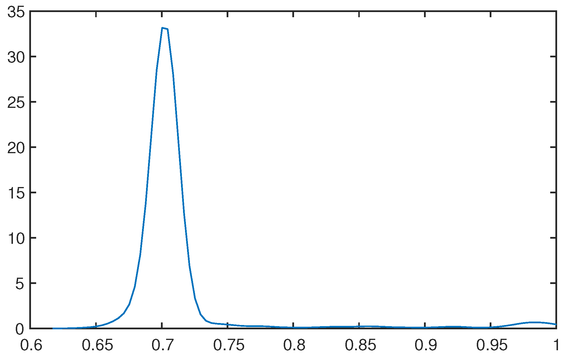 Figure 4, we expect that one of the three Gegenbauer frequencies is zero, corresponding to the highest peak at the point close to the origin. We do not report the higher orders of (