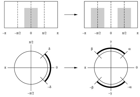 which indicates that and , which is its alias, are observationally equivalent. The trigonometric functions are liable to be expressed in terms of complex exponential functions that have both positive and negative frequencies (see Equation (A1) in Appendix A).