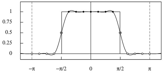 Appendix A.3. The Wrapped Coefficients of the Ideal Lowpass Filter