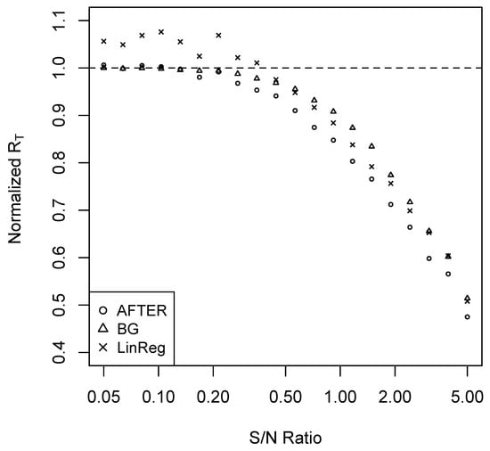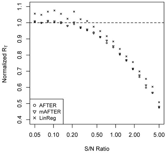 It is clear from Figure 1 that AFTER was the preferred method of choice under the CFA scenario presented in Case 1. LinReg, on the other hand, consistently underperformed compared to AFTER. Interestingly, when S/N was relatively low (less than 0.35), we observed the “puzzle” that LinReg performed worse than SA, which is due to the weight estimation error. If we correctly identify that it is the CFA scenario and apply a corresponding method like AFTER, the “puzzle” disappears: AFTER can perform better than (or very close to) SA.