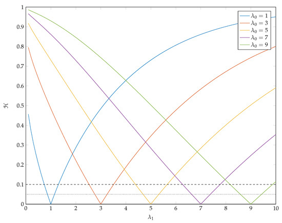 By way of example, to illustrate the basic idea and to help calibrate the procedure, suppose that we choose as our base case a Poisson distribution with parameter so that the implied standard deviation is . Writing , we are going to explore the behaviour of as we compare with for various . When comparing Poisson distributions, the squared Hellinger distance is readily shown to