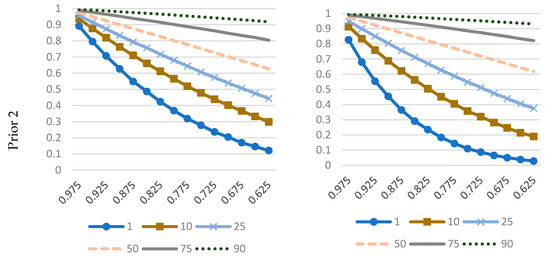 Prior distribution of (r* = 0.75 for prior 1 and prior 2).