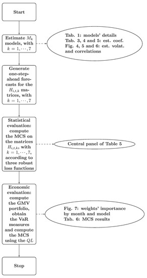All the estimations performed in this work were executed in R using the package dccmidas (Candila 2021). The summary diagram in Figure 3 illustrates the phases of our research.