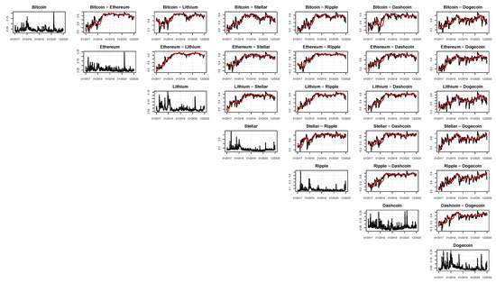 According to the site https://coinmarketcap.com/ accessed on 30 June 2021, at the time of writing, there were 8525 cryptocurrencies, with a market value of approximately USD 1676 billion. Among all these cryptocurrencies, Bitcoin has the largest market share (around 61%), followed by Ethereum (13%). The reason behind this increasing popularity remains debatable, but probably lies in the heterogeneous nature of digital currencies. In fact, the question of whether cryptocurrencies are a real currency (Yermack 2015), a speculative investment (Baek and Elbeck 2015), a safe haven (Bouri et al. 2017, 2020) or even a general financial asset (Elendner et al. 2018) is still debated. Because of this, investigating the volatility and co-volatility among the cryptocurrencies is crucial and of primary interest for investors and portfolio managers.