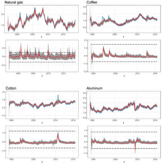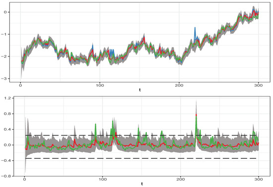 - Shephard, Neil, and Michael K. Pitt. 1997. Likelihood analysis of non-Gaussian measurement time series. Biometrika 84: 653–67. [Google Scholar] [CrossRef]