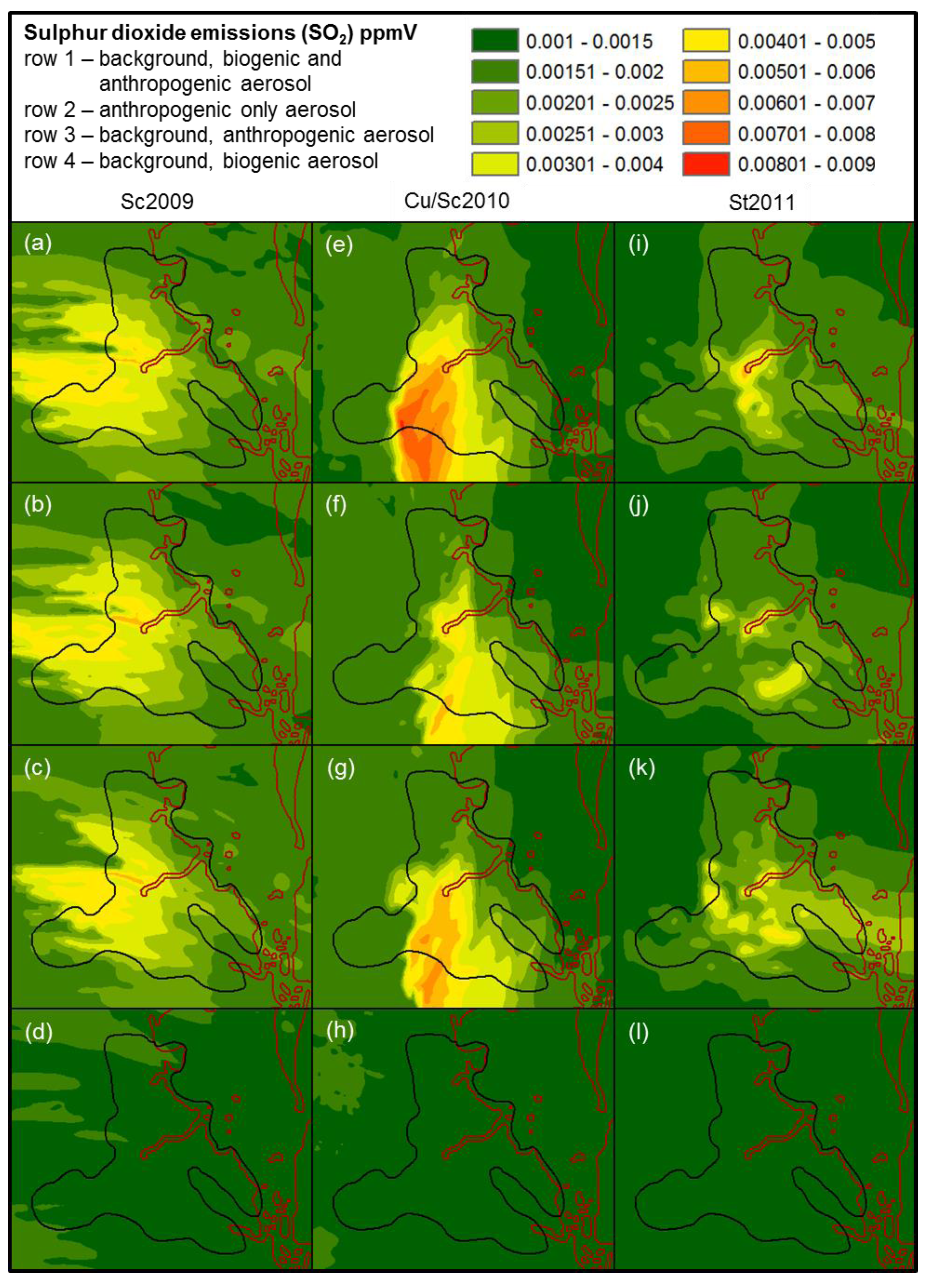- aerosol sources (background, biogenic, anthropogenic emissions);