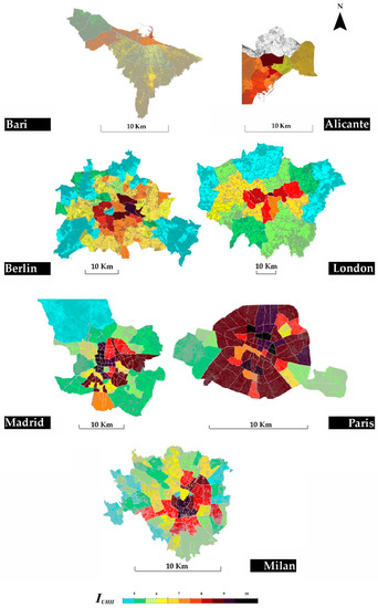 Firstly, the intensity map of the 17 urban districts of Bari is produced by applying the index. Secondly, the results are compared with the ones of five other major European cities, for a total of 344 investigated urban districts.
