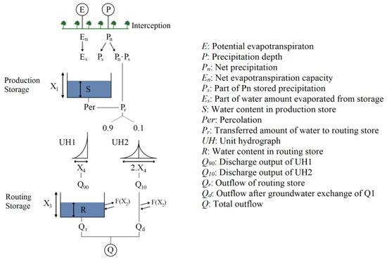 - Kumanlioglu, A.A.; Fistikoglu, O. Performance Enhancement of a Conceptual Hydrological Model by Integrating Artificial Intelligence. J. Hydrol. Eng. 2019, 24, 04019047. [Google Scholar] [CrossRef]