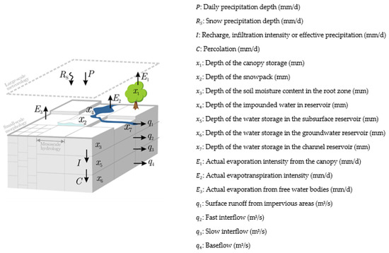 - Samaniego, L.; Kumar, R.; Attinger, S. Multiscale parameter regionalization of a grid-based hydrologic model at the mesoscale. Water Resour. Res. 2010, 46, W05523. [Google Scholar] [CrossRef]