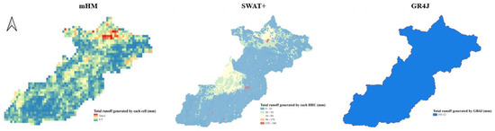- In terms of time efficiency, each model has a different run-time for the study domain. A single run takes an average of 30 s for mHM, 2 min for SWAT+, and 4 s for GR4J.