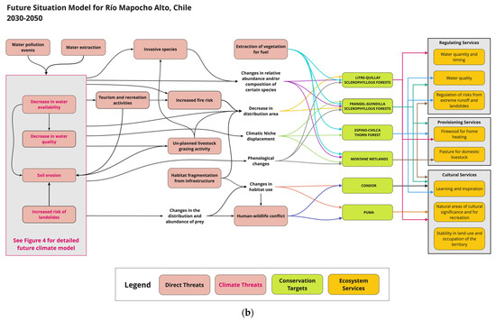 Future Situation Models for (a) Tugai Nature Reserve in Central Asia (adapted with permission from ref. [25]) and (b) Río Mapocho Alto watershed in Chile.