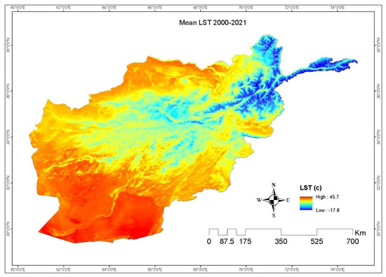The map of mean LST in Afghanistan in the study period.