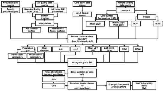 Working model for Heat Vulnerability Index mapping of Amiens.
