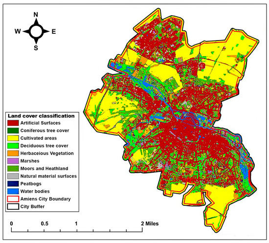 However, low-LST areas were mainly located in natural landscapes, such as rivers and grasslands. The LULC ratio of Amiens is shown in Table 2.