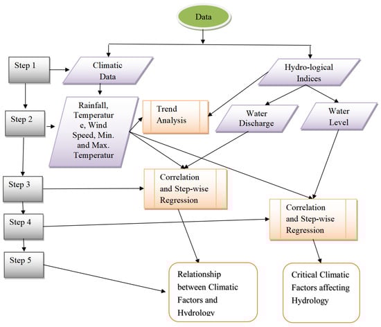 Climate change has emerged as a significant global issue, drawing the attention of scholars worldwide due to its impact on the environment at both regional and global scales, as well as its relevance in fields such as agricultural planning and government policy [1,2,3]. Hydrology, an essential environmental aspect, is closely linked to climate change, and significant changes have occurred in the hydrological conditions and surface hydrology of landscapes. Stream flow regimes are mainly controlled by seasonal temperature and precipitation patterns and watershed characteristics, which are closely related to mean climate and stream flow characteristics.