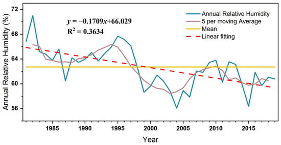 Annual relative humidity trend. Source: computed from wind records across hydrological stations in the area, 2022.