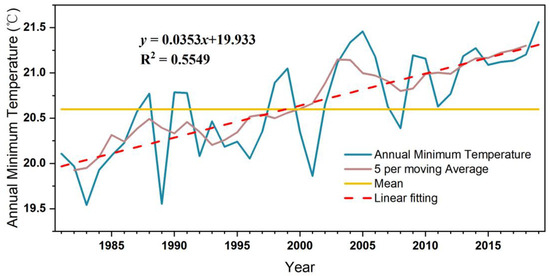 Annual minimum temperature trend. Source: computed from wind records across hydrological stations in the area, 2022.