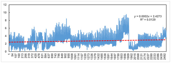 In contrast, the analysis results reveal significant negative relationships between maximum temperature and wind speed with water discharge and level. The correlation coefficients were −0.312 and −0.364 at p < 0.01 for water discharge, and −0.391 and −0.324 at p < 0.01 for water level, respectively. The negative relationships imply that an increase in both maximum temperature and wind speed leads to a decrease in water level. These findings are consistent with the work of Ümit et al. [7], who reported similar negative relationships between maximum temperature, wind speed, and water level.