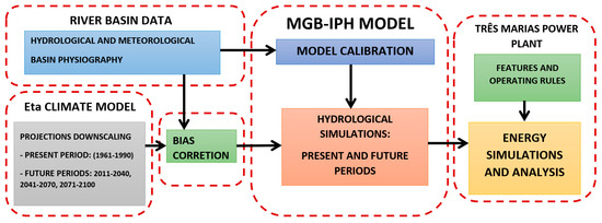 Methodological flowchart adopted to assess climate change impacts on energy generation at Três Marias HPP.