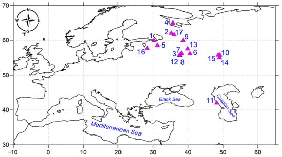 Location of the cultural heritage sites in the European part of Russia (the numbers in the figure correspond to the numbering of sites in the text above).