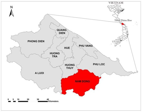 Map of the study area in the Nam Dong District, Thua Thien Hue Province, Vietnam.