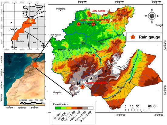 Rainfall (or, more generally, precipitation) is a phenomenon that varies erratically in space and time [1]. It is also the most critical variable for the hydrological and climatic study of a region. Knowledge of its spatio-temporal variability determines the ability of crops to adapt to cultivated land, irrigation water requirements, sensitivity to hazards, such as floods and droughts, and the design of hydraulic structures [2]. It is also considered the most critical factor for socio-economic development and strategic planning in Morocco. Assessing its spatio-temporal variability requires reliable long-term data. The absence of these records, particularly in the Mediterranean climatic context with high rainfall variability [3], strongly hampers hydro-climatic studies, which aim to assess the prospects of a region in terms of agricultural, hydraulic, and economic development.