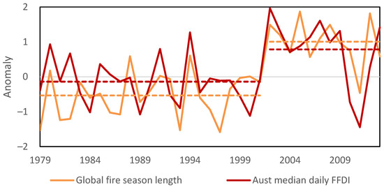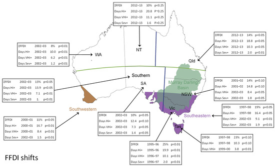 The results were compared with a more recent national station-based record of FFDIs extending from 1971–1972 to 2016–2017 [15,16]. The high-quality data are available from 1957–1958 to the most recent fire year, 2020–2021. All records were then analyzed for regime shifts followed by an attribution of those shifts.