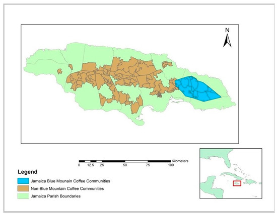 Illustration of coffee growing communities across Jamaica [Reprinted/adapted with permission from [49]. 2015, Mighty].