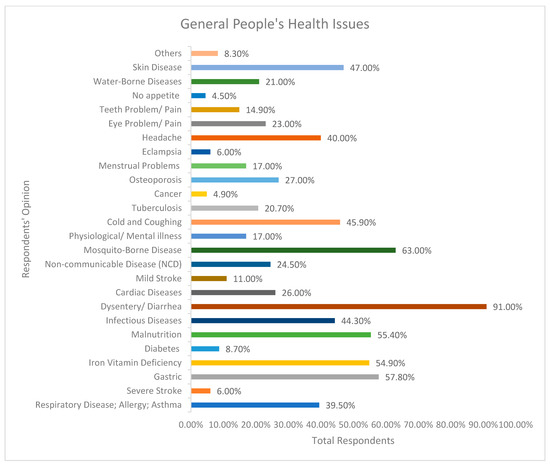 | In the absence of safe water, diarrhea, dysentery, soreness, itching, and malnutrition issues arise in the area | ||||