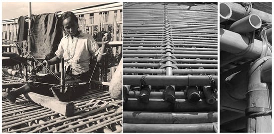 Another example is the bamboo house found in Southeast Asia, where the locally available materials influence the size of the built form. For example, in Chittagong Hill Tracts, Bangladesh, bamboo is used for the floor, columns, and exterior walls (refer to Figure 4), so the housing module is based on the available bamboo material. The lashing method is commonly used for its flexibility, which allows for disassembling the bamboo, adding additional bamboo, and even quickly rebuilding the entire house [110]. Together, the material’s structural properties and construction method determine the size of the built form. For a bamboo building, a living space can be around 23 m2, compared to a wood space that can be up to 60 m2. Therefore, there is strong modularity and tectonic logic established in vernacular architecture, which differs from the notion that vernacular architecture is organic, random, or even irrational [111].