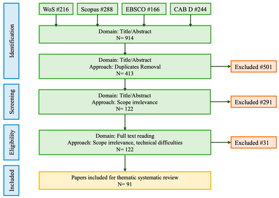 The PRISMA diagram for assessing the quality of the studies from Web of Science, Scopus, EBSCO, and CAB Direct.