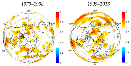 Trends of or were estimated based on the change in the average values in anomaly number over the following time intervals: 1979–1998 and 1999–2018.