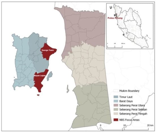Map of Penang, George Town and Bayan Lepas mukims. Copyright by Think City. Source: Adaptation Fund, 2021 [40].