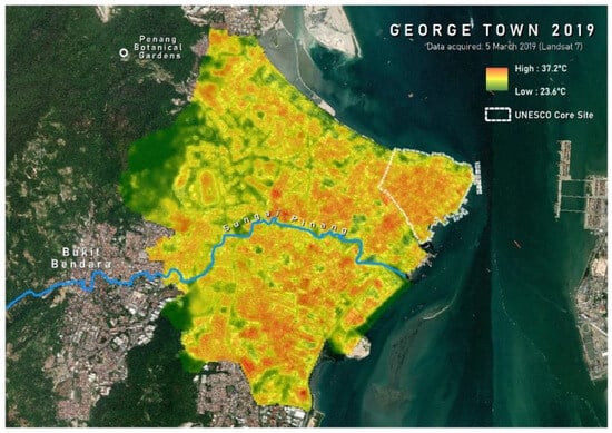 Land surface temperature of George Town, 2019. Source: Castelo et al., 2024 [41].