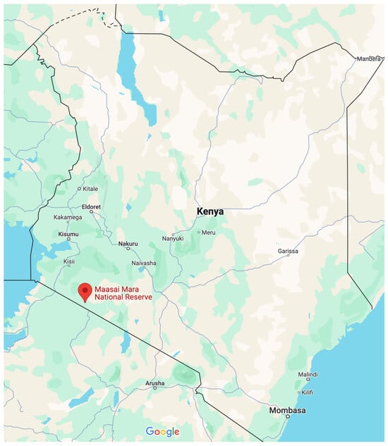 Maasai Mara National Reserve (MMNR) is Kenya’s leading wildlife tourism destination. It is located in Narok County, which is in the southwestern part of Kenya (Figure 1), and covers an area of 1510 km2 [52]. It was proclaimed as a UNESCO World Heritage Site in 2023. It forms the northernmost part of the Mara–Serengeti ecosystem, the world’s largest ecosystem, which hosts the last surviving multispecies migration on the planet. Migration consists of more than 1.5 million wildebeest, zebras, and antelopes, and it attracts various predators, including lions, hyenas, cheetahs, and leopards. This annual spectacular event has been dubbed the eighth wonder of the modern world and is a popular tourist attraction. MMNR comprises the Mara Triangle, which the Mara Conservancy manages, and Central Mara (also known as the greater Mara), which the County Government of Narok manages [53]. The Mara River Bridge, a popular site for spectacular annual wildebeest migration, interconnects the two. This iconic UNESCO World Heritage Site that shares its border with Serengeti National Park of Tanzania lies at an altitude of 480–2280 m above sea level, which can influence the area’s climatic weather pattern. Maasai Mara receives rainfall throughout the year, with two punctuated episodes of high rainfall peaks between November and December and from March to May. Times of extremely high rainfall episodes can affect certain tourism activities due to access issues given the gravel roads. During seasonal droughts, animals also tend to be concentrated in areas with a perennial supply of rainfall, which can shape tourism’s game viewing opportunities. The Maasai Mara Game Reserve shares its borders with the Indigenous Maasai People of Kenya. The Maasai people are traditionally nomadic. This group of people is found on the Kenyan and Tanzanian sides of the border, as the game reserve is just on the border between the two countries.