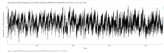 Climate data were obtained from the Prediction of Worldwide Energy Resources (POWER). This platform provides meteorological data from NASA projects for renewable energy, building energy efficiency, and agricultural purposes. The meteorological data were archived from NASA’s Global Modelling and Assimilation Office Modern-Era Retrospective Analysis for Research and Applications-MERRA-2 assimilation model and GEOS-5.12.4 FP-IT, in which the data date back to the 1st of January 1981. The data used were based on the monthly and annual POWER data version of 2024 in August, which has improved capacity for data traceability. MERRA-2 data has been used to understand climate scenarios in Sub-Saharan Africa [63] and East and Western Africa [64].