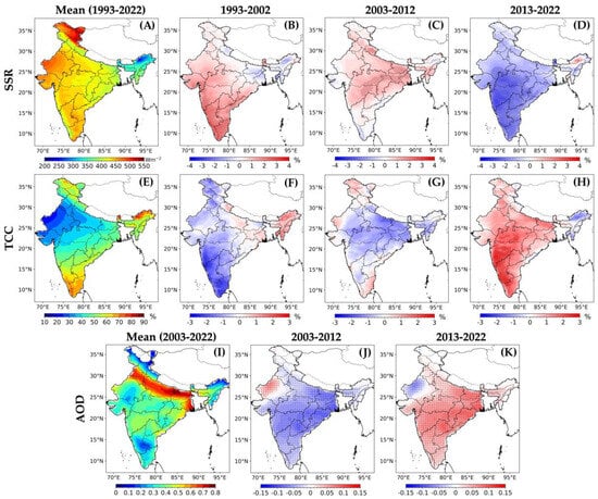 APA StyleJadhav, A. V., Rahul, P. R. C., Kumar, V., Dumka, U. C., & Bhawar, R. L. (2024). Spatiotemporal Assessment of Surface Solar Dimming in India: Impacts of Multi-Level Clouds and Atmospheric Aerosols. Climate, 12(4), 48. https://doi.org/10.3390/cli12040048