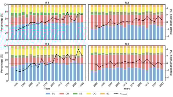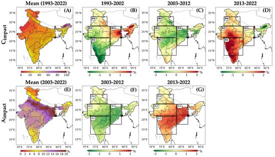 | Impact | Region | Regional Mean Impact (%) | Mean Impact (%) | Trend (% Year−1) | |||||