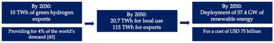 Morocco articulated an ambitious strategy to become a leader in the hydrogen sector. This plan is laid out in the National Hydrogen Commission’s Roadmap on Green Hydrogen [23], as summarised in Figure 4.