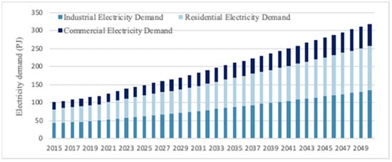 Lastly, the electricity demand increase between 2015 and 2050 because of rapid GDP and population growth [21] are presented in Figure 6.