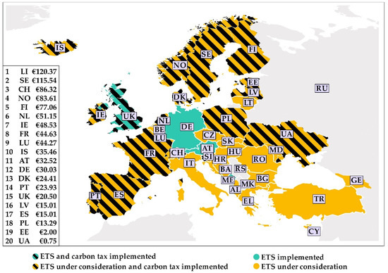 - Tax Foundation. Carbon Taxes in Europe. Available online: https://taxfoundation.org/carbon-taxes-in-europe-2022/ (accessed on 8 July 2023).
