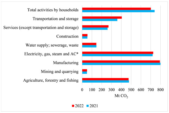 - Eurostat. Air Emissions Accounts for Greenhouse Gases by NACE Rev. 2 Activity—Quarterly Data. Available online: https://ec.europa.eu/eurostat/databrowser/view/env_ac_aigg_q/default/table?lang=en (accessed on 18 July 2023).
