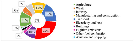 - Our World in Data. Greenhouse Gas Emissions by Sector, Romania. 2019. Available online: https://ourworldindata.org/grapher/ghg-emissions-by-sector?time=latest&country=~ROU (accessed on 20 July 2023).